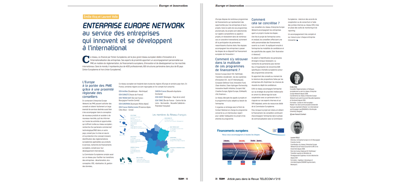 Dans cette édition n°215, un article signé Émilie VICQ et Laurent VOLLE met en lumière le rôle clé du réseau EEN dans l'accompagnement des entreprises européennes vers l'innovation et l'internationalisation. ✨